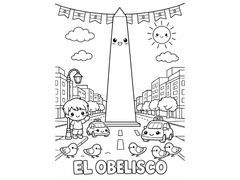 Paisajes, simbolos y escenas culturales de Argentina en version infantil para colorear. Una forma divertida de aprender y crear.