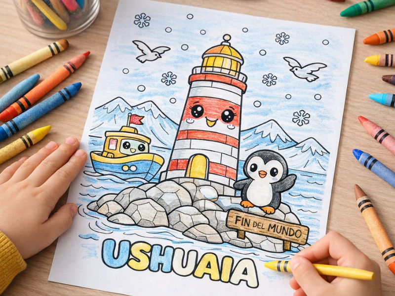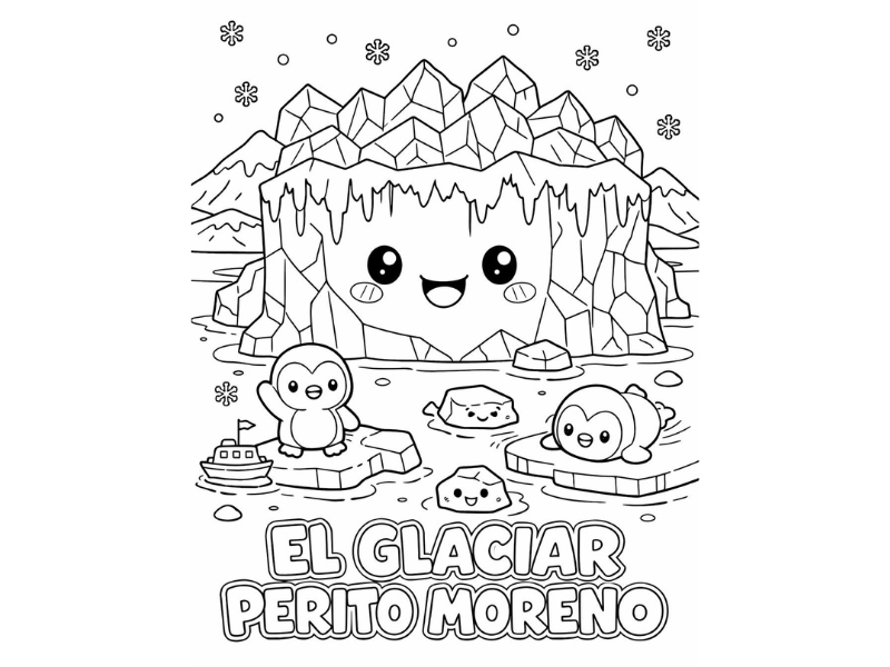 Paisajes, simbolos y escenas culturales de Argentina en version infantil para colorear. Una forma divertida de aprender y crear.