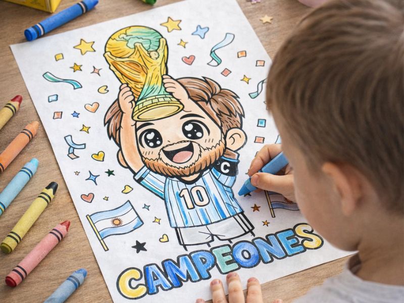 Jugadores, camisetas, pelotas y momentos historicos de la seleccion para colorear. Perfecto para chicos y chicas fanaticos del futbol.